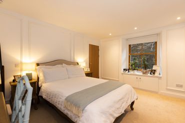 The en-suite bathroom with large matt shower tray and vanity unit with wall hung toilet maximised the space. The bespoke wardrobes are designed by our in house team and create a tranquil and relaxing feel in the bedroom.