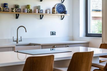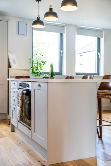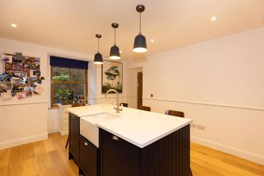 A new kitchen, with quartz stone worktops, and a converted gas Aga gave the kitchen a luxurios and bright feel, with all the appliances and boiler built into the kitchen cabinets.